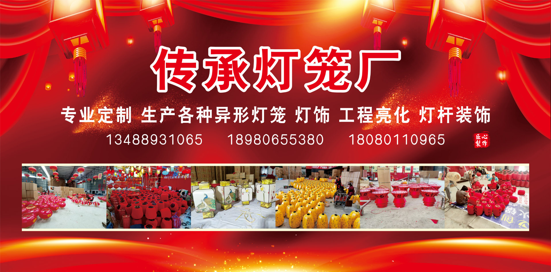 傳承工藝品(成都)有限公司位于天府之國成都清流柳泉村,作為西部文化重鎮成都一直是人文藝術活躍的地區。傳承燈籠制作基地---成都新繁,地理位置優越,交通方便,可直達各地,便捷的交通區位,傳統文化與現代工藝的優良結合。本公司專業批發銷售各種類型的宮燈、冬瓜燈籠、植絨燈籠、仿古燈籠、廣告燈籠、綢布燈籠等。我公司不僅能大批量的定制燈籠,還能為各企事業單位燈籠點綴布展,以紅紅火火的中國風引起市場的共鳴。